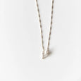 A leaf, shaped like a heart was cast in sterling silver and dangles softly from a 17" chain.